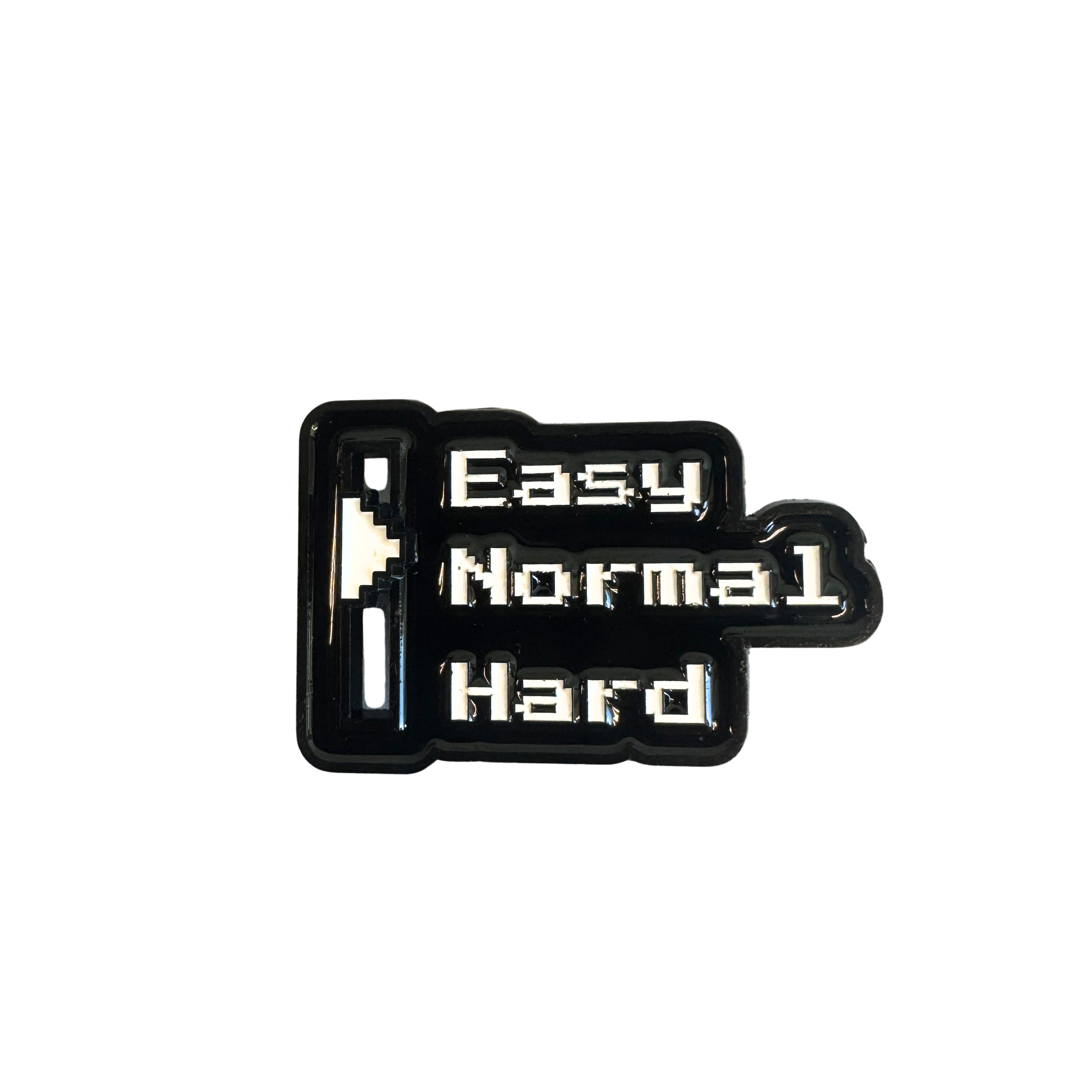 This interactive enamel pin lets you set your daily mood with a playful slide. Designed with a classic pixel-art interface, the Level Selector Pin gives you three options: Easy, Normal, or Hard — all selectable with a movable anchor that clicks into place.