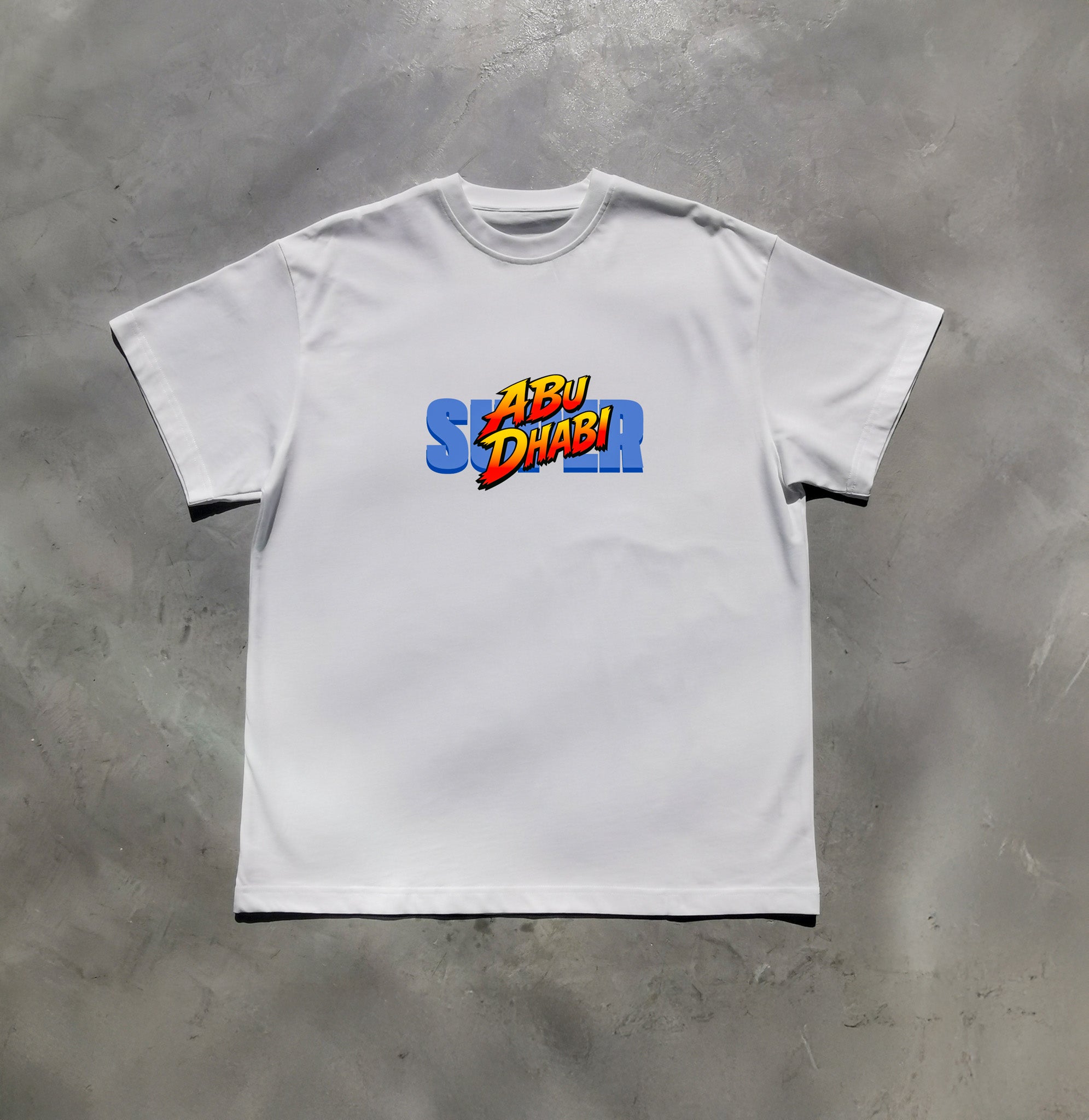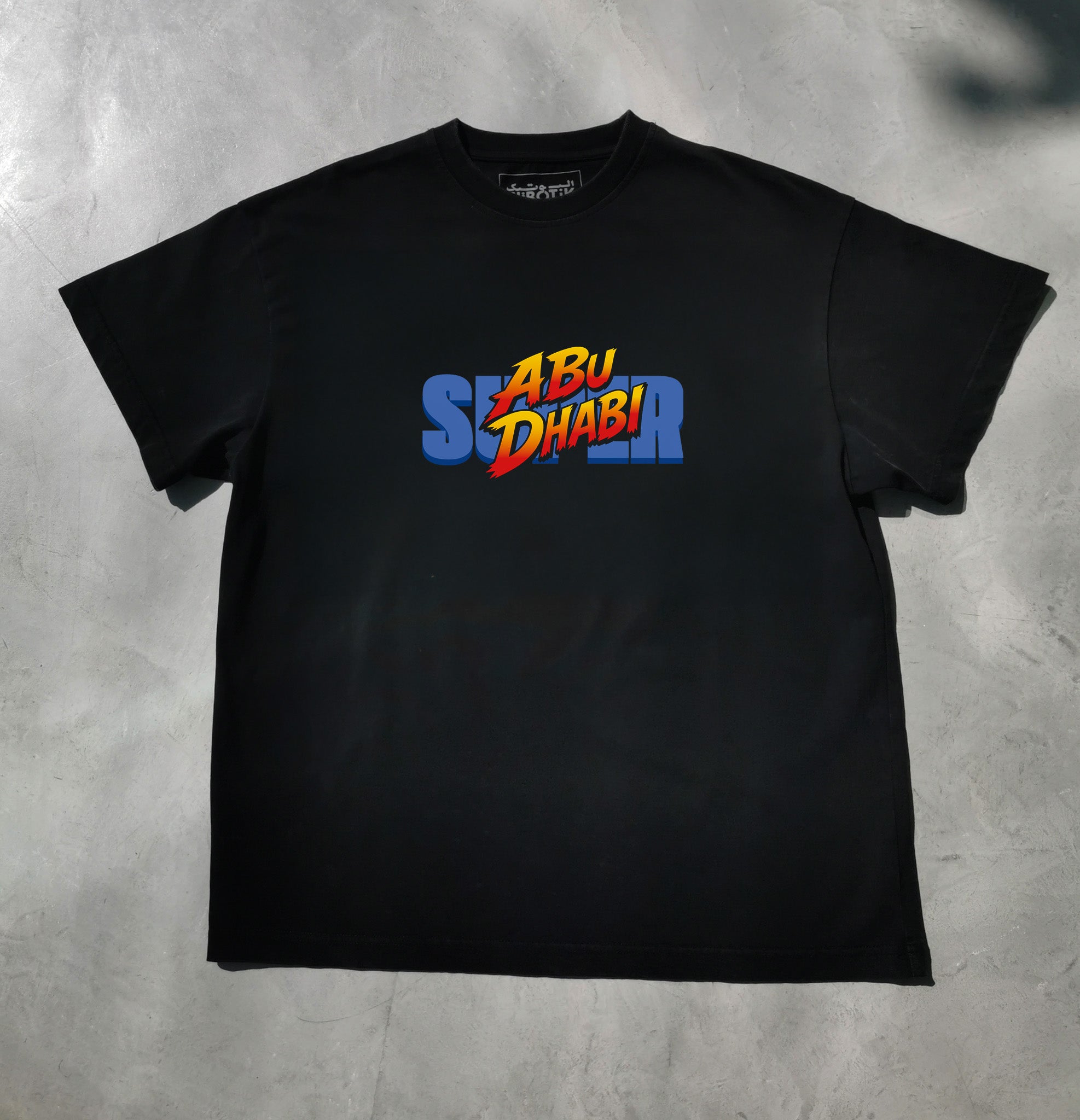 Bold retro arcade lettering that practically yells “SELECT YOUR FIGHTER,” except the only fighter here is you, wandering Abu Dhabi...